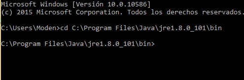 necesitamos llegar hasta keytool.exe C:Program FilesJavajre1.8.0_101binkeytool.exe
