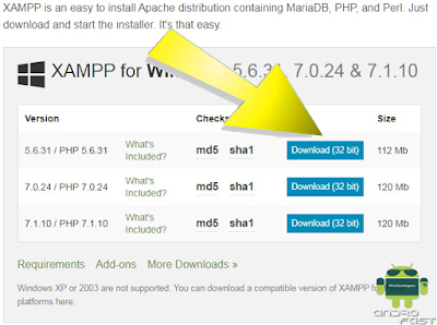 Haz clic en el enlace de descarga para descargar XAMPP. Así sea tu equipo de 64 bits no hay problema en descargarlas.