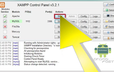 Inicia los componentes de Apache y MySQL. También puedes iniciar los otros componentes si los vas a usar, dando clic en el botón star.