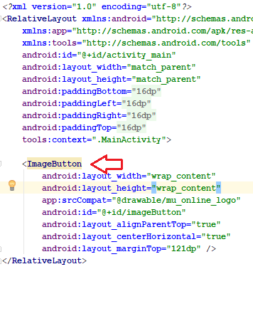 Entramos en modo text y nos dirigimos a nuestro ImagenButton